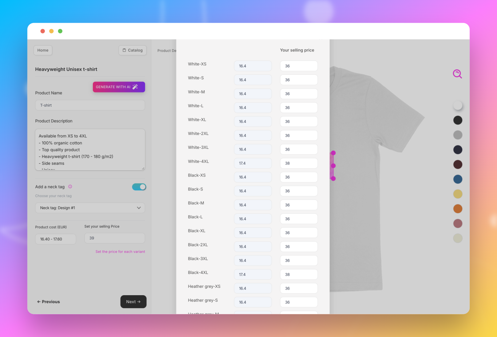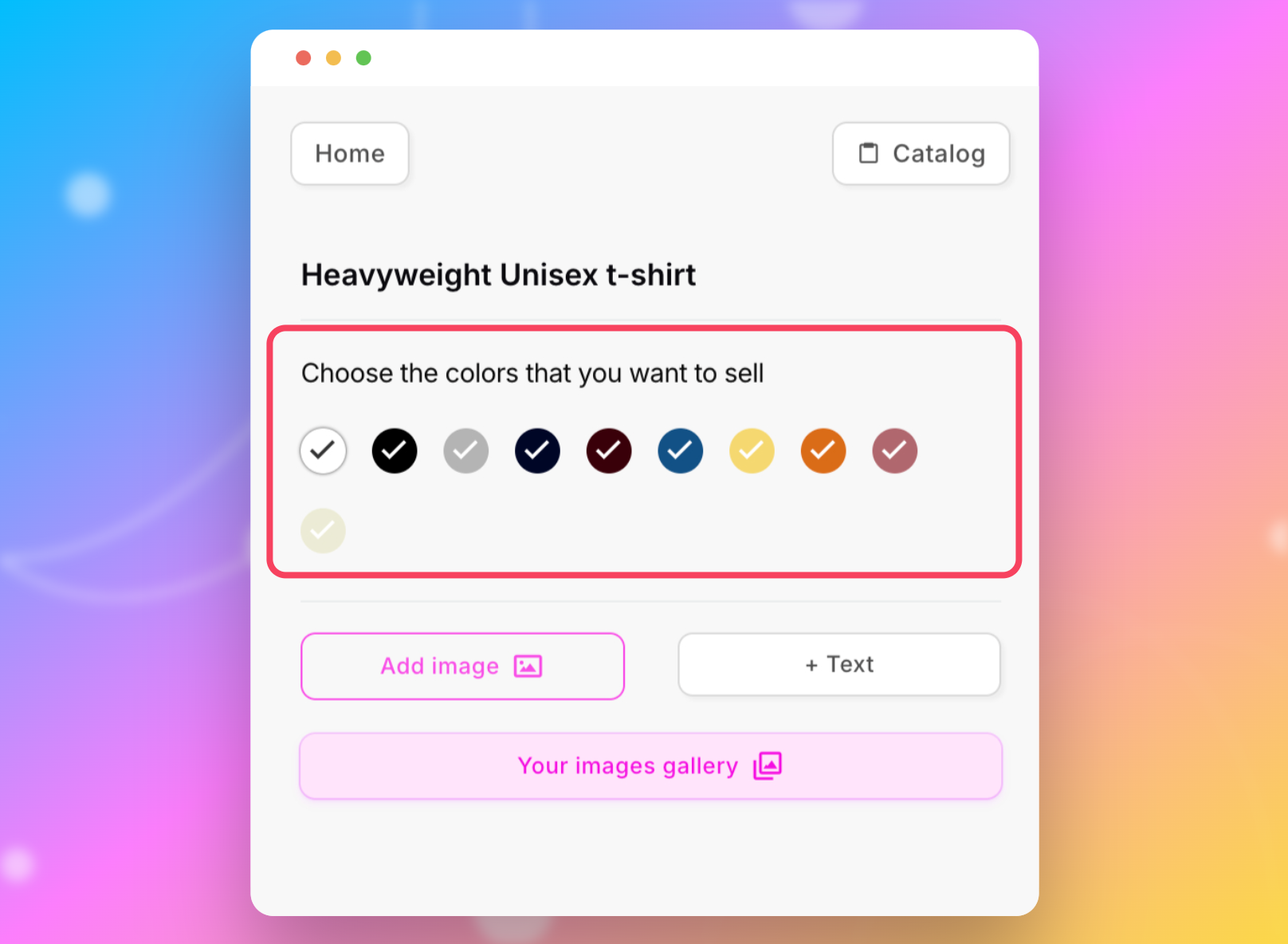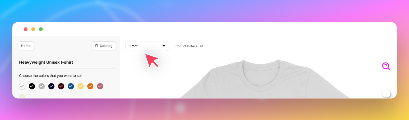 Ensuite, choisissez les coloris et options que vous souhaitez proposer dans votre boutique.