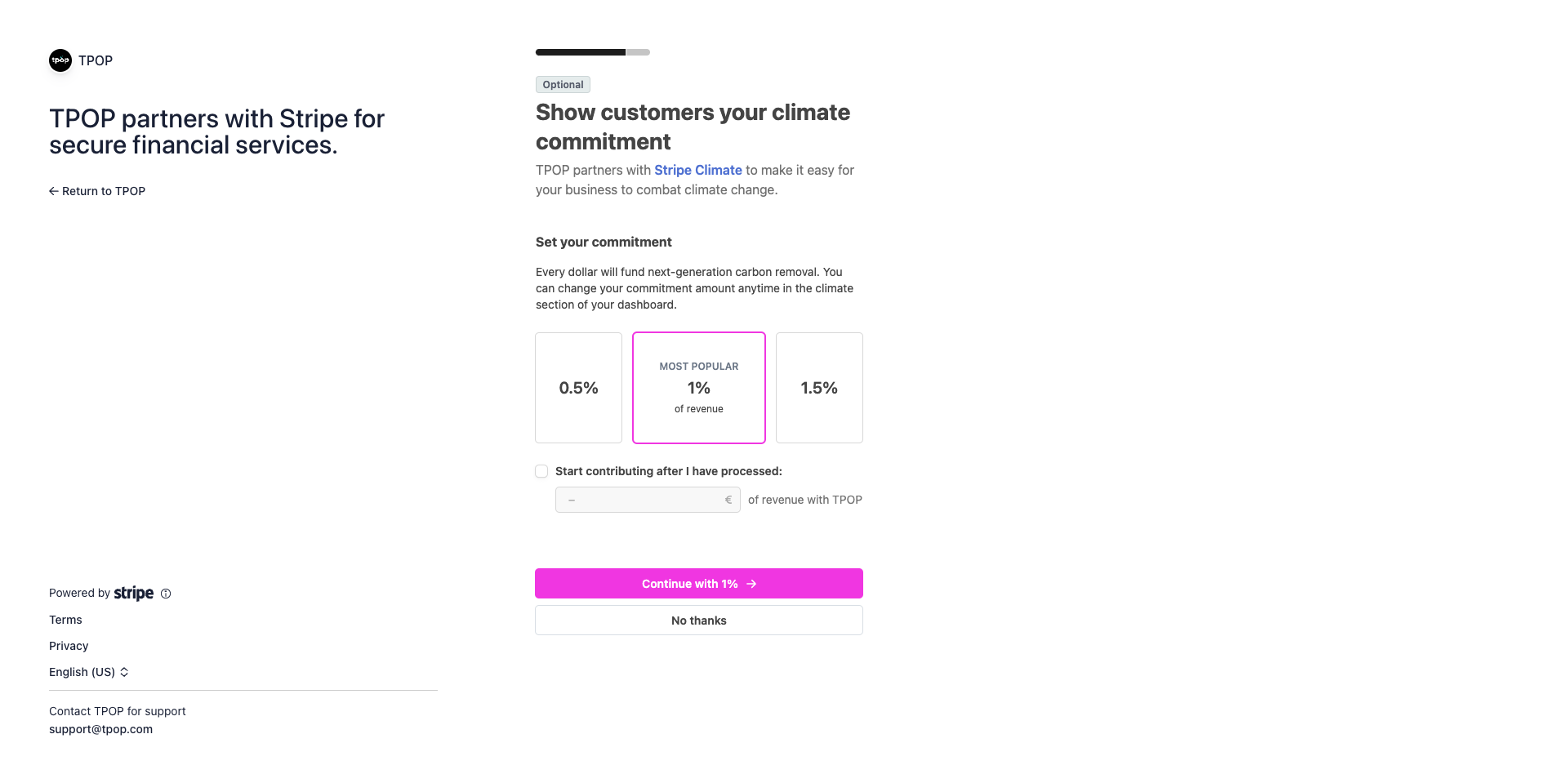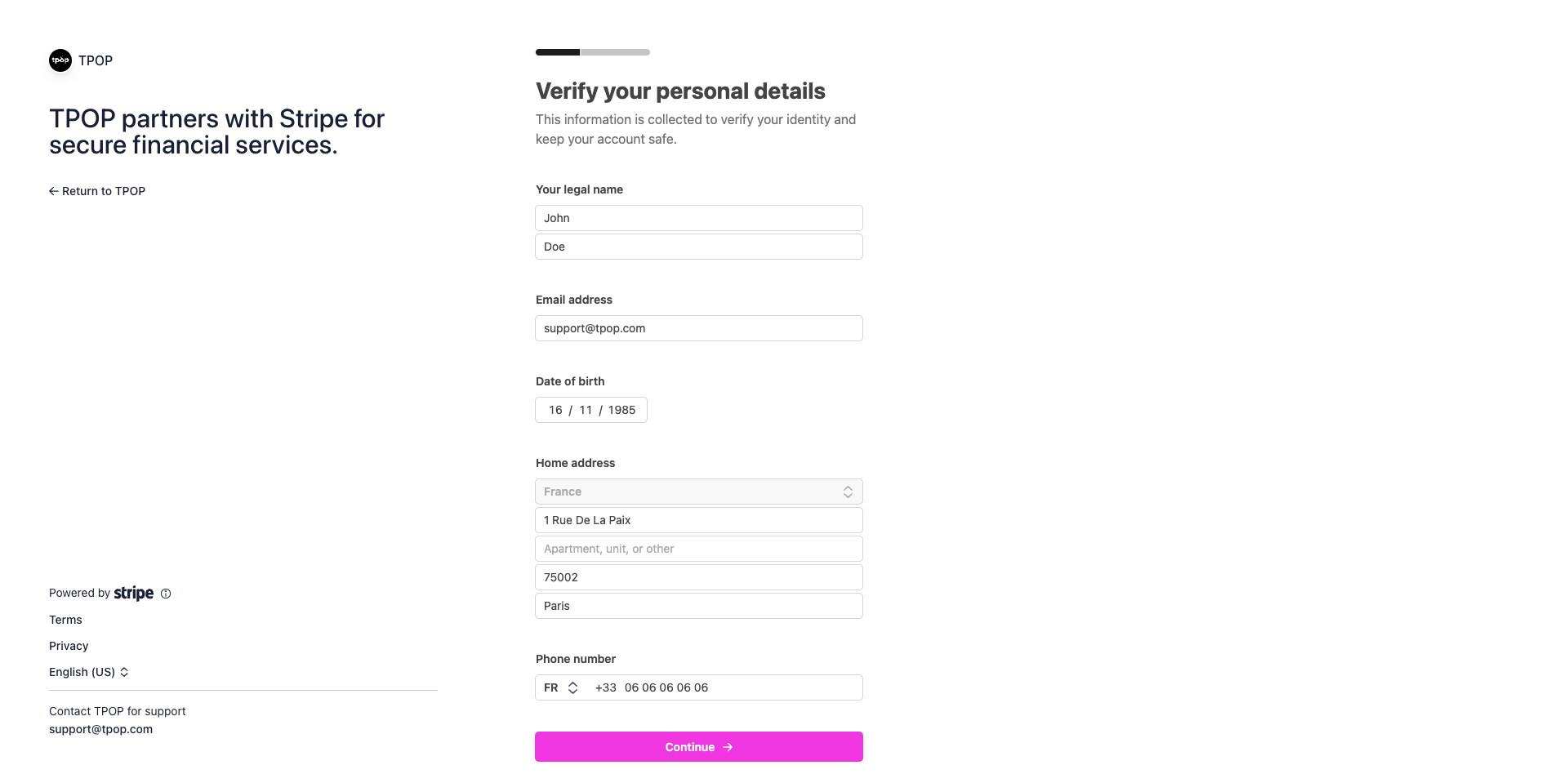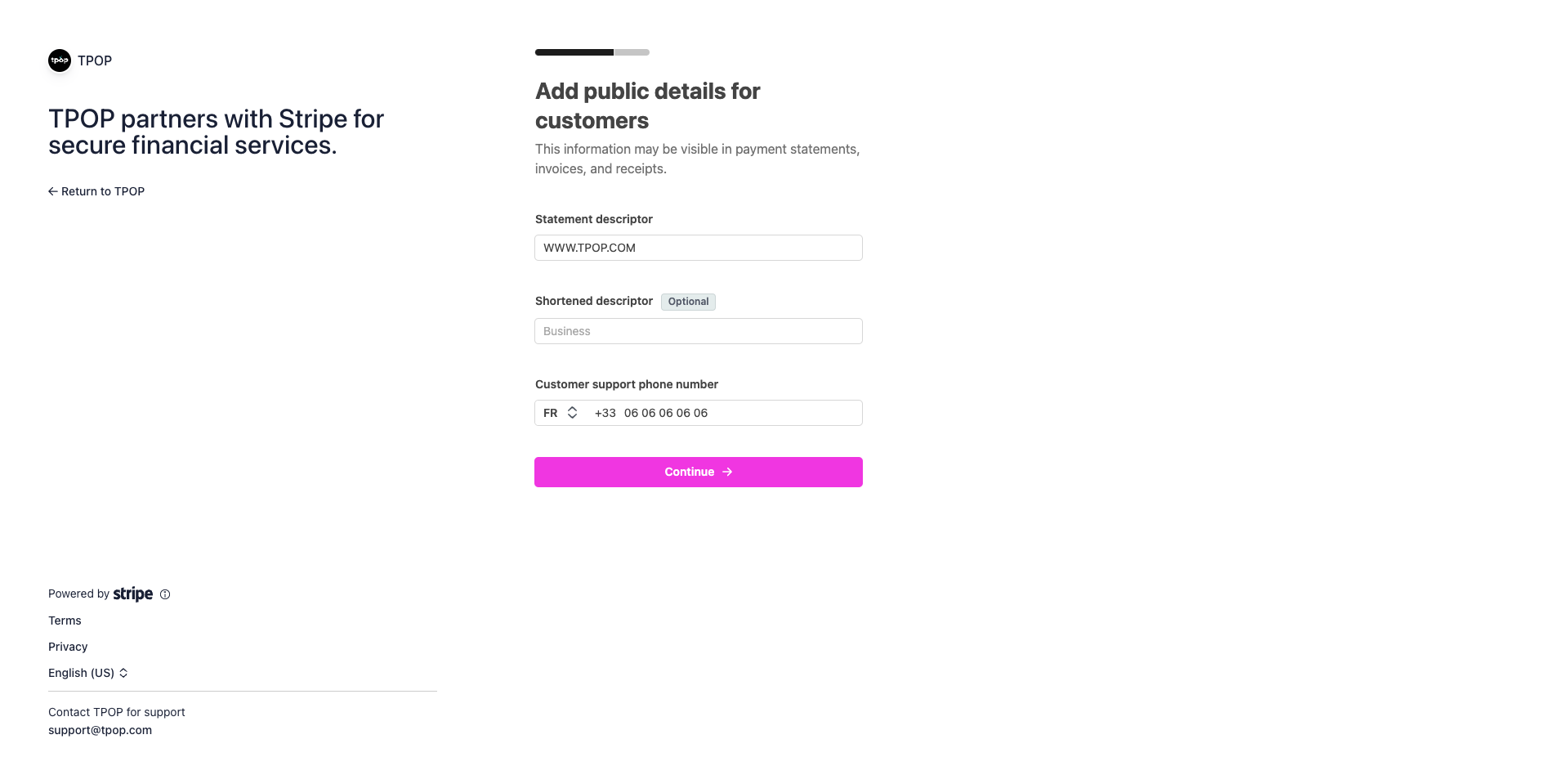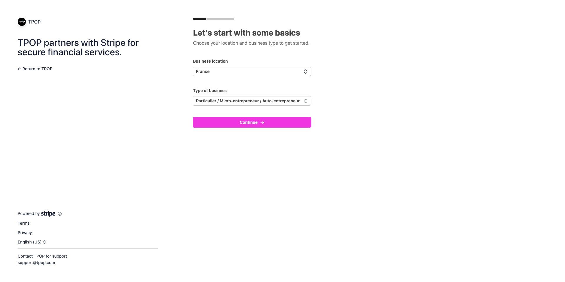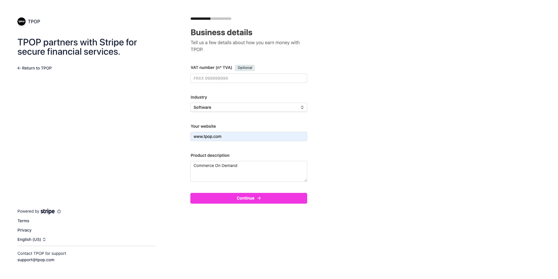 C’est pourquoi TPOP a noué un partenariat avec Stripe afin de simplifier l’accès à la mise en place d’un système de paiement pour ses utilisateurs.