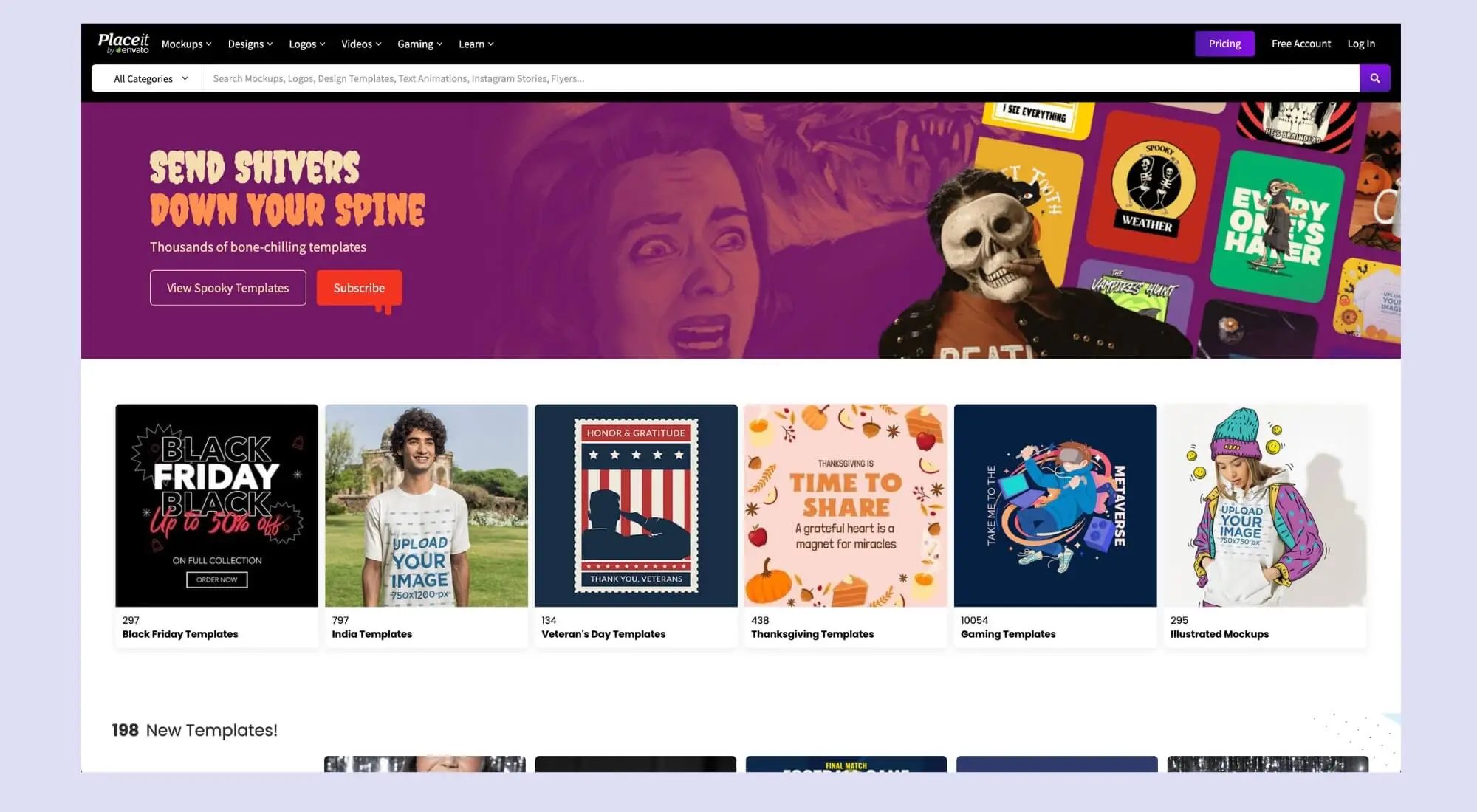 Sur PlaceIt, on trouve des designs complets en plus de sa banque de mockups méga balèze, dont vous avez probablement déjà entendu parler grâce à votre statut de pro du POD.