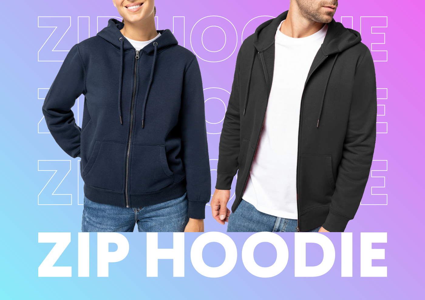 Le hoodie unisexe zippé fait une entrée fracassante dans notre catalogue. Décliné en 3 coloris (noir, ivoire et bleu marine), il sera un allié indéniable pour booster vos ventes cette année.