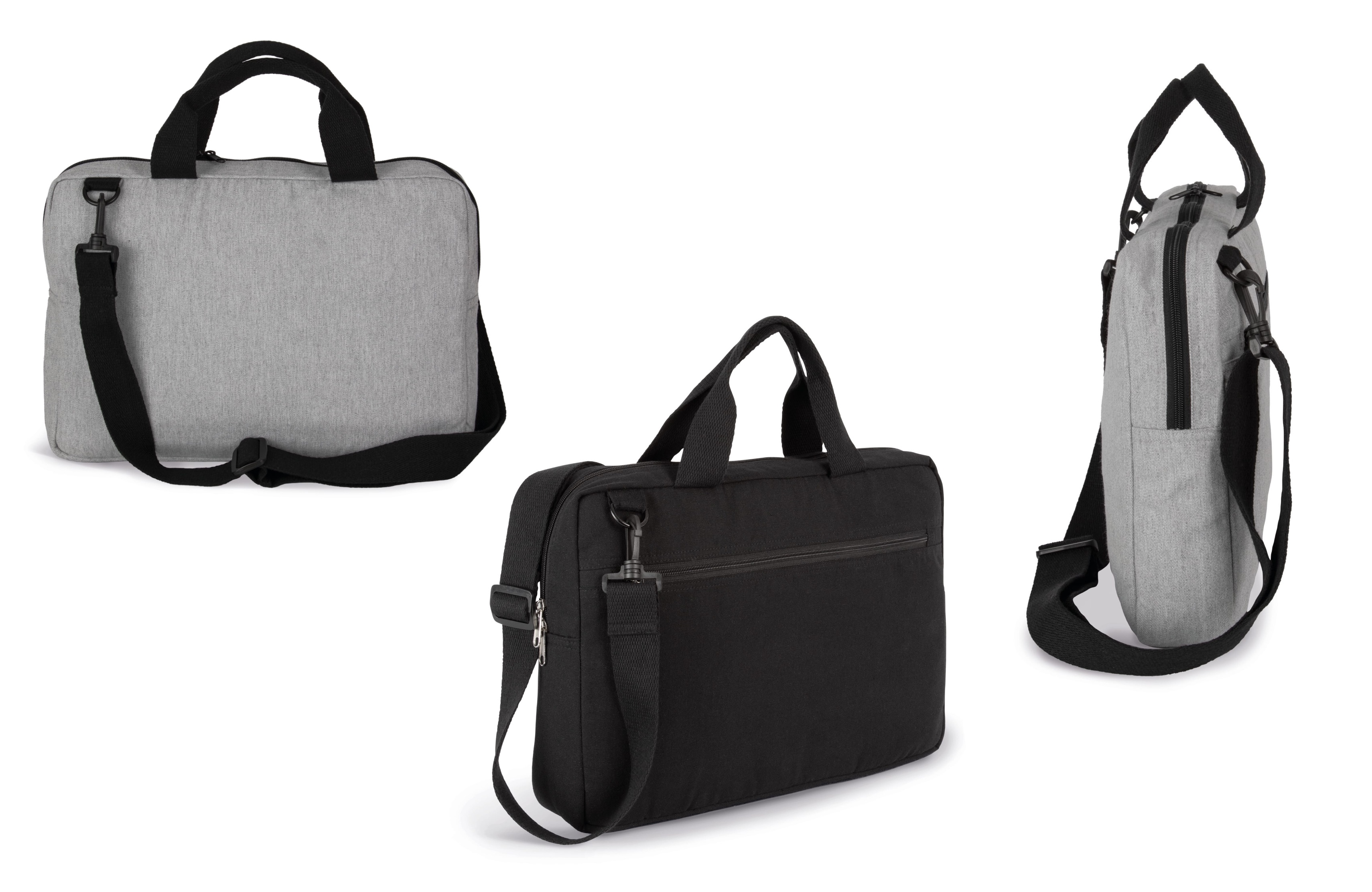 Superbe sac pour ordinateur (taille 15 pouces) et porte-documents, pratique et durable. Poignées + bandoulière réglable et amovible en ruban de coton recyclé.
